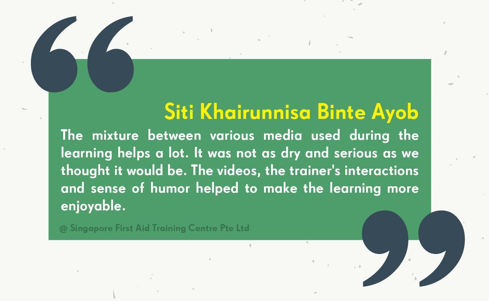 We put in all kinds of learning experiences into our child first aid course to recreate that uplifting, supportive, learners' environment that you have with your students. And we really don't mind if you wish to use our techniques on them!